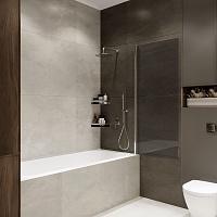 Монтаж: устанавливается на борт прямоугольной ванны и крепится упором в стену с помощью фурнитуры, входящей в комплект.